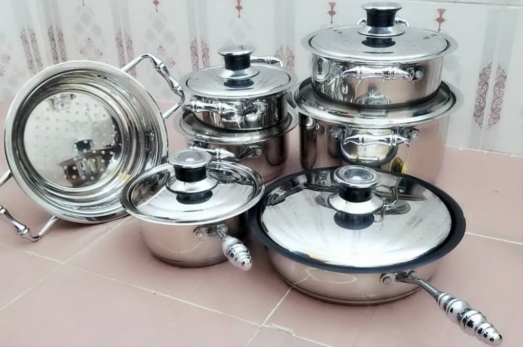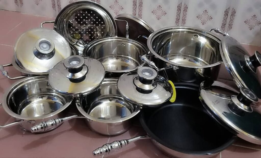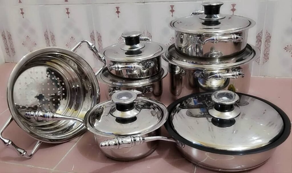 The Classy Style Healthy Steel Pot comes in 5 wonderful sizes with 1 filter. 1 frying pan and their unbreakable covers that is Made from the finest steel as against the conventional Aluminuim that causes cancer. Regulates the amount of heat energy that enters the pot while cooking thereby retaining up to 85% of the food nutritional value after cooking4. Vegetables retain it's original colour and taste.5. Soup cooked in the pot is clear, tastes fresh and the bottom of the pot does not paste (non-sticky).6. The resonance from the cover and the earthen base of the pot creates anion environment, Fruits and Veggies kept in pot remains FRESH even after 3 days.The classy style steel pot is a result of a decade of harmonious energy research. It works by integrating weak natural energies in food into a new and strong natural energy field with rejuvenates our cells and tissues when consumed. it is made from the highest grade of stainless steel (type 430 and type 340). It cooks perfectly on induction stove tops, retains nutrients in food and requires less artificial spices,